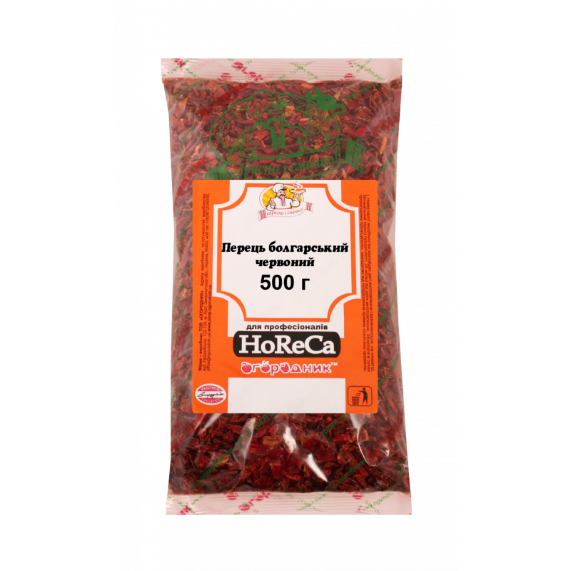 Перець болгарський подрібнений містить велику кількість вітамінів групи В, С, H, PP, та мікроелементів - калій, цинк, мідь, фосфор, йод,марганець, хром, натрій і багато інших. З таким перцем смачні не тільки борщі господинь, а й страви високої кухні для справжніх гурманів.