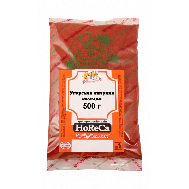 Паприка угорська солодка ОгородникТМ основна пряність в приготуванні гуляшу, томатних та рибних супів, також додається до м’яса та ковбас, використовується для приготування соусів та підлив.