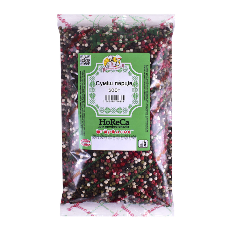 Суміш перців ТМ Огородник дозволяє виявити цілий спектр смаків, закладений у кількох видах цих рослин – «пекучих гостей» із тропічних широт. Відомо, що перець і, зокрема, ефірні масла, що містяться в його горошинах, здатні позитивно впливати на нервову систему, поліпшувати травлення, підвищувати апетит. Суміш перців є ароматичною і смаковою приправою, тож може бути використана у багатьох стравах – перших, других, десертах. Годиться до м'яса, стейків, риби, овочів, грибів, так само як і до салатів, соусів. Горошини перцю зазвичай додають, готуючи маринади для овочів.